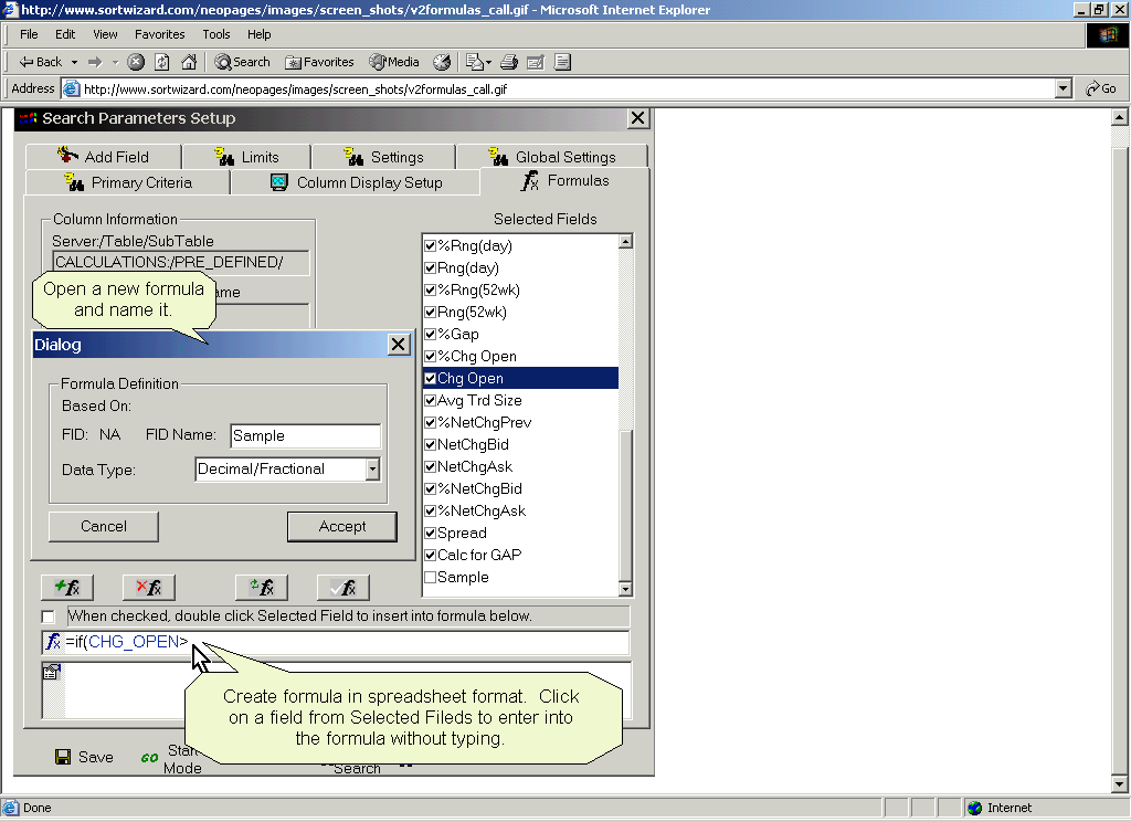 There are two versions of SortWizard, the standard version and the plus version. The plus version of SortWizard allows you to set up customized formulas and includes a historical database of technical indicators.