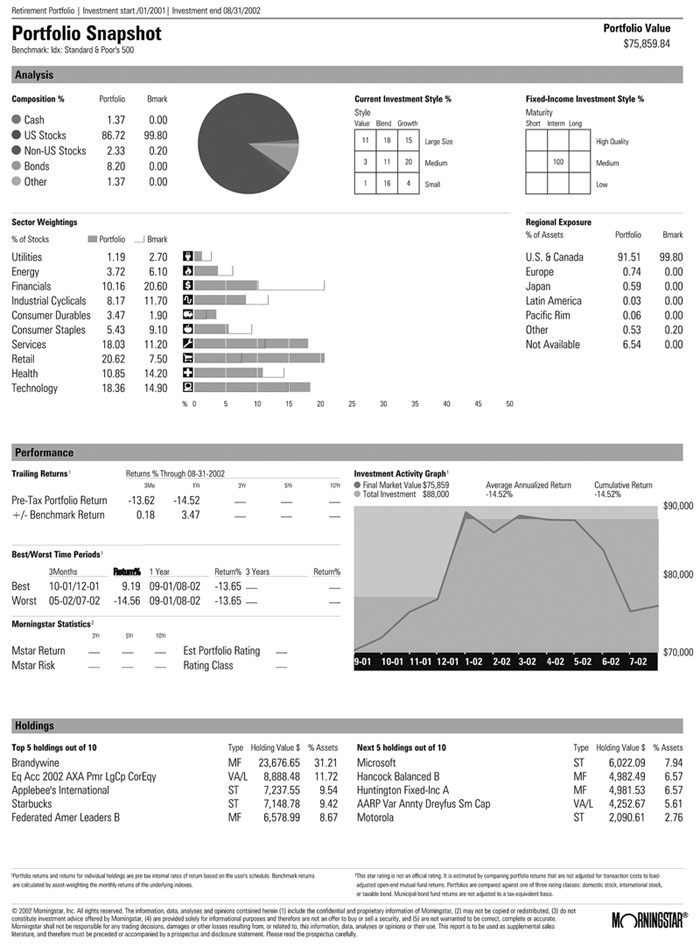 - Portfolio: An illustration that combines all of your securities into a single report, to illustrate how a selected set of investments would have performed together as a portfolio.