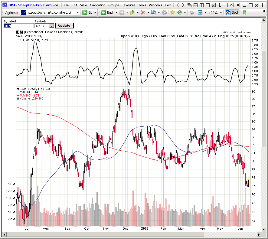 Where can I find the standard deviation of an individual stocks price over a period of time?