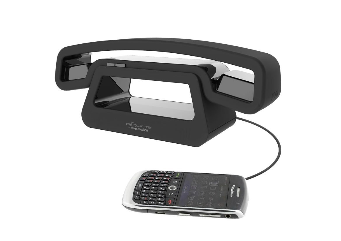 The Consumer Electronics Show (CES) is an annual spectacle in the Nevada desert where companies from around the globe introduce the latest and greatest in consumer technical gadgetry. This past January was my second time attending CES, and each visit, there have been a few products that caught my eye and made me wish and hope I could get my hands on them to review. One of them is from a company you’ve probably never heard of, yet has been around for 120 years: Swissvoice. The company makes a variety of accessories for landline and mobile phone users. At this year’s CES they debuted the ePure Bluetooth Station. This uniquely designed system will pair with your mobile phone to allow you to talk on a handset similar to the phones of yesteryear. Beyond calls, you can use ePure for chatting via Skype, Google Talk, FaceTime, etc. In addition, the ePure supports hands-free operation and acts as a speaker system for you to stream your audio. For this review, I tested the BH01u model that was given to me by the company with a powered micro-USB port, so you can charge your phone or other USB devices. There is also an iPhone version with an integrated docking station for iPhone 4/4S (it does not have a dedicated Lightning connector).