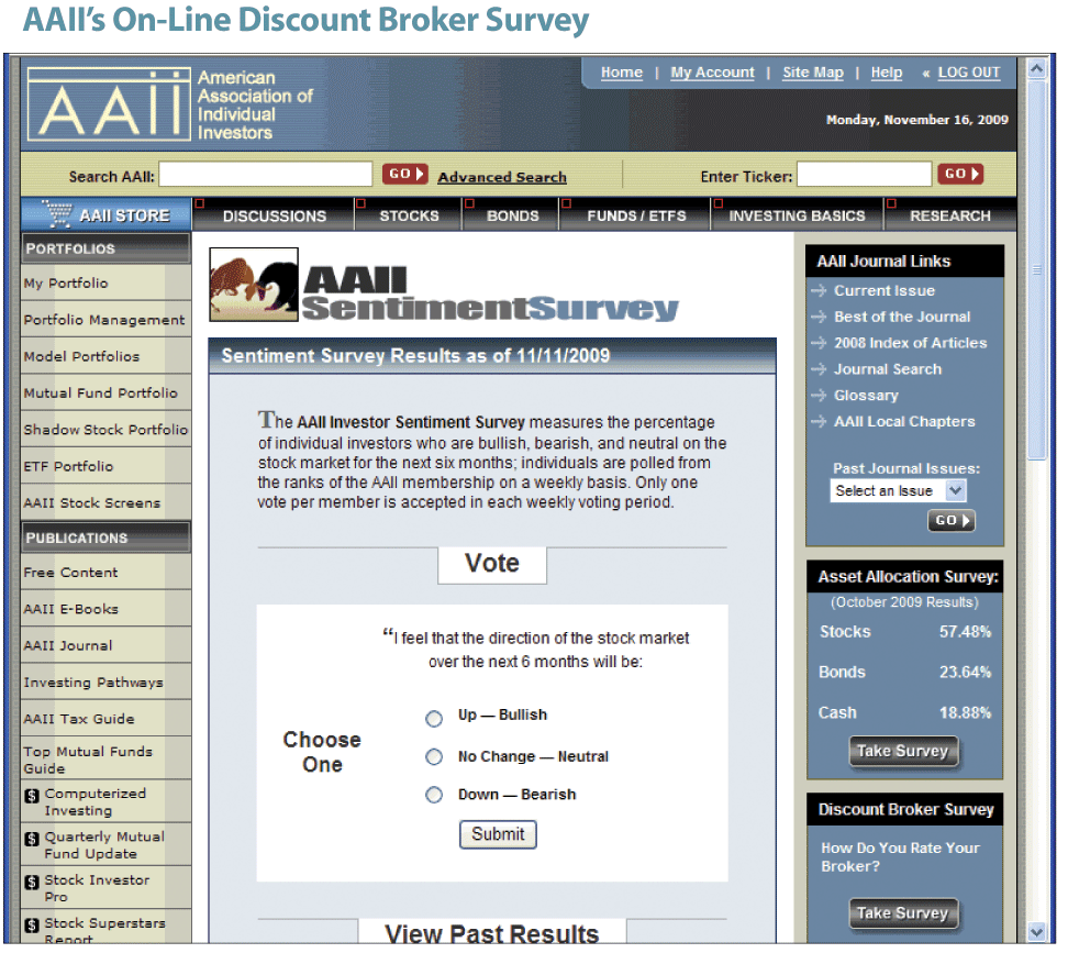 The Investor Surveys area of AAII.com offers members the opportunity to voice their opinions on a variety of topics.