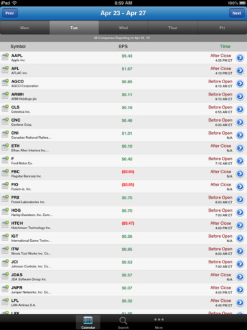 Earnings Calendar for iPad