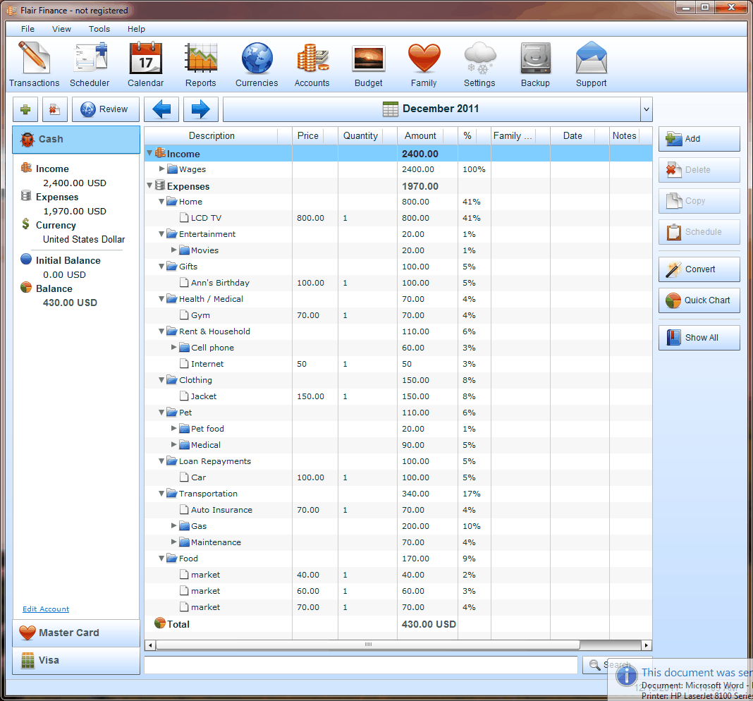 Flair Finance is a personal financial management program with an intuitive user interface that can assist you in tracking your income and expenses. Unlike the vast majority of personal finance programs, Flair Finance is a cross-application program and can run on both Mac and Windows operating systems.