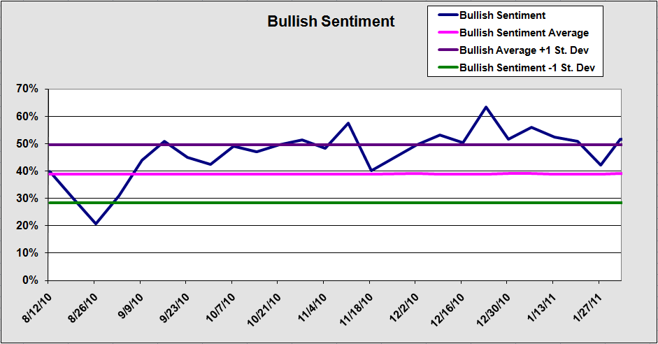 Investors were able to celebrate a happy new year in the market too, as 2010’s late-year rally carried over to January. For the first month of 2011, the S&P 500 gained nearly 2.3%. The S&P did finally break its streak of nine consecutive weeks of gains, which led to investor bullishness dipping below 50% for the first time since November. This drop was short-lived, however, as investor optimism is again on the rise.
