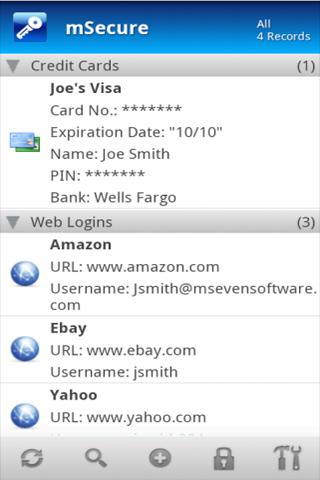Obviously if you are storing sensitive information, you want to make sure it is secure. With mSecure the data you enter is protected by 256-bit Blowfish encryption. Without getting technical, this offers a level of protection that is more than enough for most individuals. An optional feature will destroy all of your information if a certain number of unsuccessful log-in attempts are made, which is an added level of security.