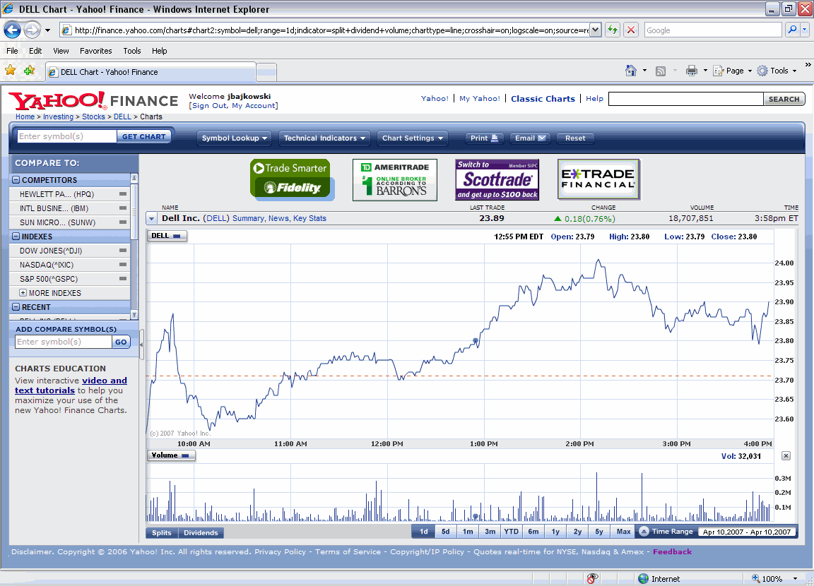 Recently, Yahoo! Finance stopped offering free real-time ECN data due to pricing changes by the exchanges. [ECN stands for electronic communication network, a computer system that facilitates trading without using a traditional market maker.] Now, Yahoo! Finance premium members can access streaming real-time stock and index price and volume data for $10.95 per month. Included in the premium membership are more advanced portfolio tracking and screening tools and live charts. Premium members can watch as the current bid and ask prices, daily volume and market cap tick up and down in a flash. The site has also introduced new fully customizable, interactive technical analysis charts. Premium members can choose from numerous technical analysis techniques and chart data in real time. Additionally, the charts timeframe is fully customizable and you can compare a stock to an index, its top competitors or any exchange-traded stock.