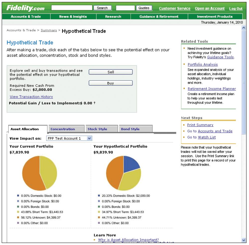 While portfolio tracking is limited, most brokers will offer some level of diversification and asset allocation analysis tools. These tools can be extremely helpful, but bear in mind that only your holdings with that broker are analyzed. For comprehensive portfolio trading and analysis tools, you will need to use a third-party program.