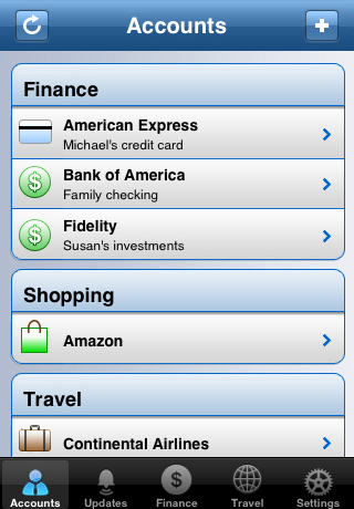 Despite its name, Pageonce Personal Finance can monitor a broad range of online accounts. After downloading and installing the iPhone/iPad app from the Apple Store, I was able to set up my credit card, bank and investment accounts, as well as my AT&T wireless account and even my Netflix account. Pageonce has teamed up with a number of providers in order to make this app truly a one-stop-shop for both financial and transactional applications. In fact, the Pageonce website claims that it is the largest mobile personal finance service in the U.S.