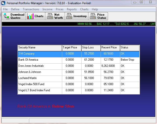 You are able to create 999 different portfolios for separate investment accounts. Reports can be customized with different date ranges can include any combination of portfolios. Simple technical analysis capabilities are also provided, with indicators such as moving averages, relative strength and RSI included in the program. In addition, Personal Portfolio Manager 7 offers built-in capabilities for downloading current and historical stock quotes.