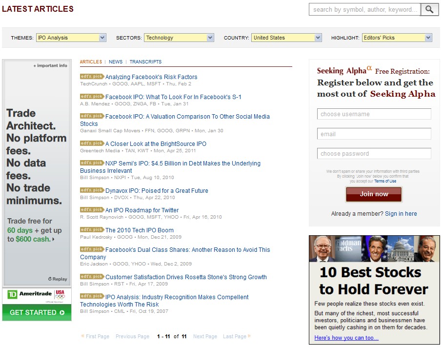 Avid readers may recall that AAII Journal editor Charles Rotblut listed Seeking Alpha as one of his favorite Web resources in the 15th edition of AAII’s Guide to the Top Investment Web Sites. Readers may also recall a July 2011 Sitelite article on the Seeking Alpha Earnings Center. So what exactly is Seeking Alpha, and what makes it so valuable?