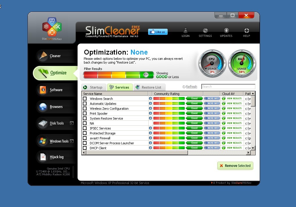 SlimCleaner gives you access to a community of users who provide real-time feedback about apps and items on their own computer to help your PC’s performance.