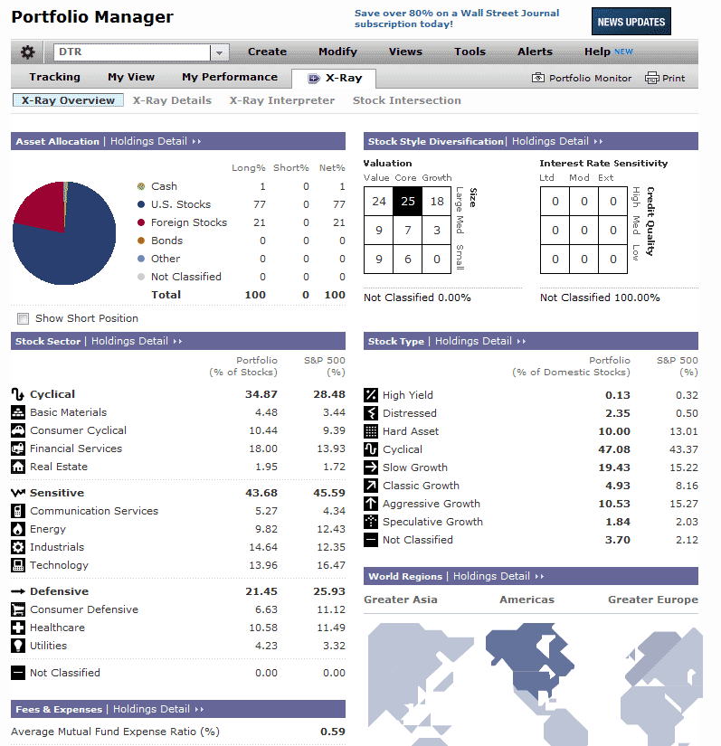 The portfolio manager is available to all subscribers, but there are certain features offered only to premium members, such as X-Ray and portfolio monitor. X-Ray is a snapshot of your portfolio showing asset allocation, style and type. Furthermore, it breaks your holdings down by region and provides a number of fundamental ratios relative to the S&P 500. Portfolio monitor is a monthly report offered to premium members that presents an extensive summary of your portfolio, including ratings, top gainers and losers, and a table of all your holdings. This monthly report can be emailed to you and archived online.