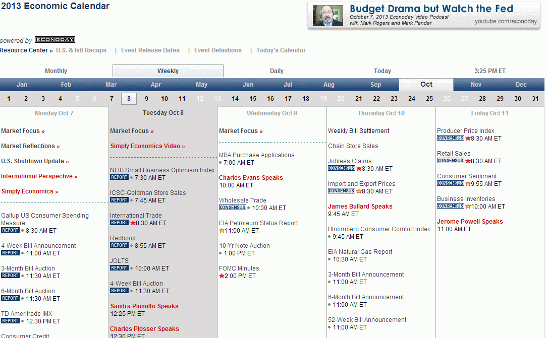 A calendar listing all upcoming economic reports is provided. Consensus forecasts are listed for the major upcoming releases. Charts of past data for certain indicators and a thorough description of what the report measures are provided. A special "Why Investors Care" section for major releases explains how the report may impact market direction. A full-year release schedule for the data is published. Free weekly emails covering U.S. and global economic data are available.