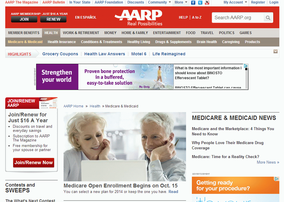 Click on Health in the upper menu (just below the AARP logo), then click on Medicare & Medicaid.